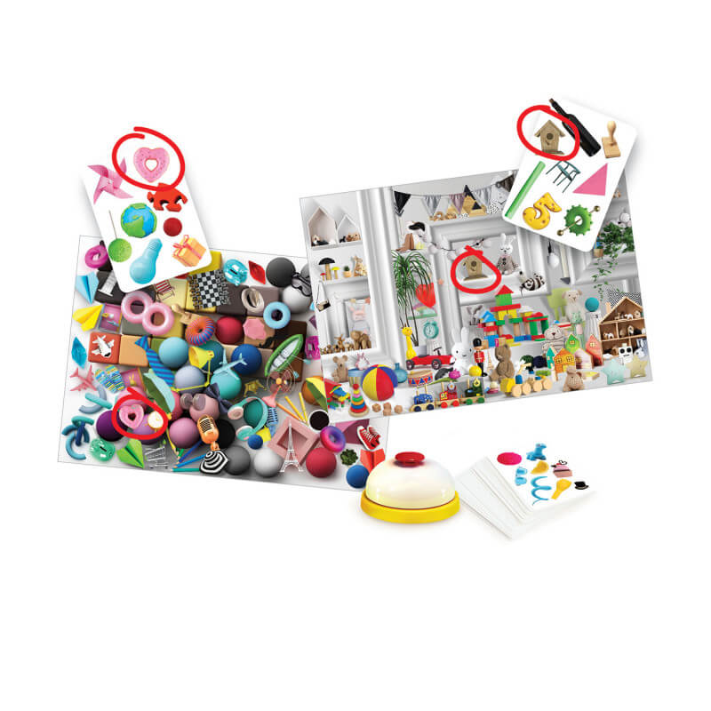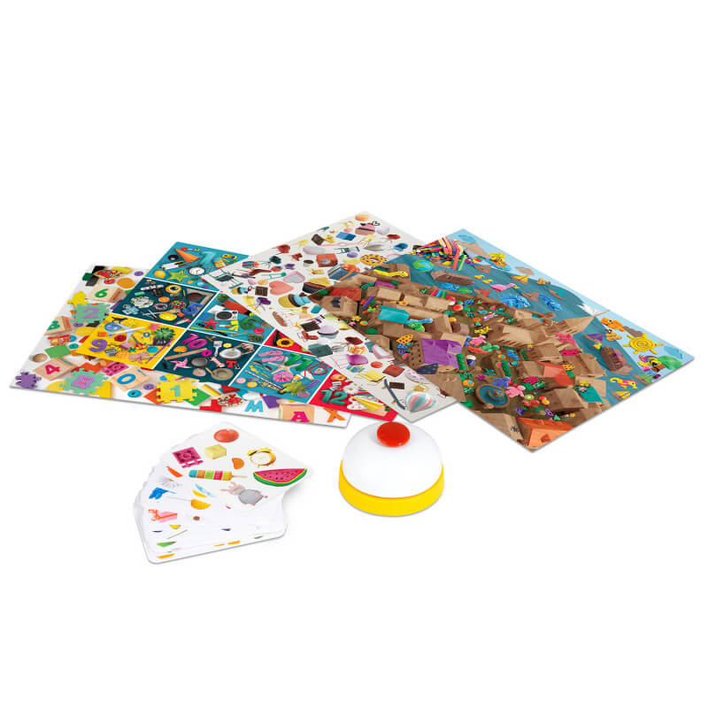 Το απόλυτο παιχνίδι παρατηρητικότητας για όλη την οικογένεια! Διάλεξε ένα ταμπλό, τράβηξε μια κάρτα και γρήγορα ψάξε να βρεις ποιο από τα αντικείμενα της κάρτας σου υπάρχει στο ταμπλό σου! Βρες το πρώτος, χτύπα το κουδουνάκι και ντινγκ, κέρδισες! Με 2 τρόπους παιχνιδιού Ο πιο γρήγορος κερδίζει: Βρες πρώτος το αντικείμενο που αναπαρίσταται στην κάρτα και στο ταμπλό σου Πρωτάθλημα: Βρες πρώτος το αντικείμενο που υποδείχθηκε σε ένα από τα ταμπλό Αριθμός Παικτών: 2-4 Καταλληλότητα Ηλικίας: 6+ Χρονών Το παιχνίδι περιλαμβάνει 4 ταμπλό διπλής όψης 30 κάρτες διπλής όψης 1 κουδούνι Φυλλάδιο οδηγιών.