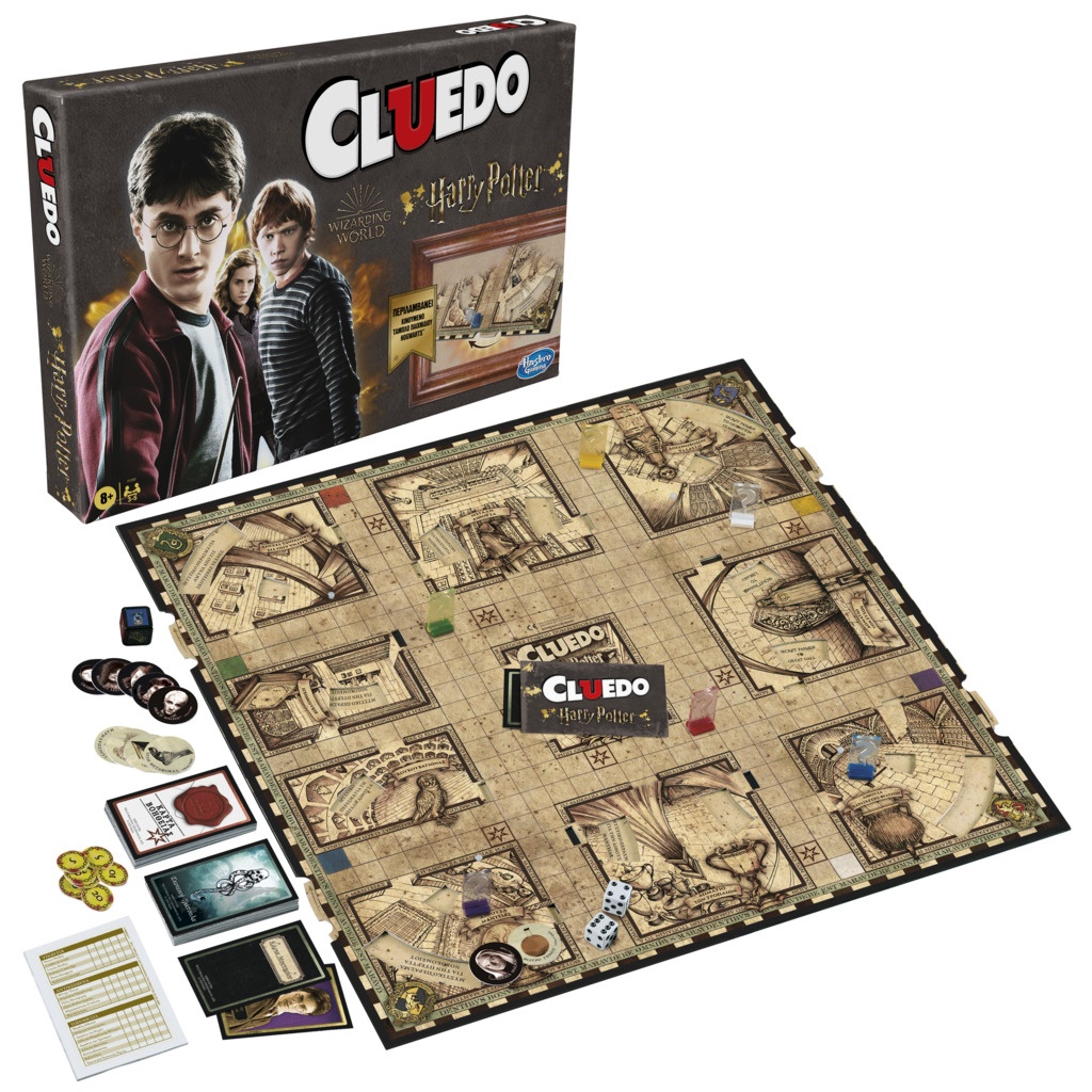 Cluedo Harry Potter (F1240). Σε αυτήν την Έκδοση Χάρι Πότερ του παιχνιδιού Cluedo, ένας μαθητής εξαφανίστηκε από τη Σχολή Μαγείας του Χόγκουαρτς. Ποιος μπορεί να λύσει τη μυστηριώδη εξαφάνιση; Τα παιδιά παίζουν ως Χάρι, Ρον, Ερμιόνη, Τζίνι, Λούνα ή Νέβιλ για να ανακαλύψουν ποιος το έκανε, ποιο ξόρκι ή αντικείμενο χρησιμοποιήθηκε και πού έγινε η επίθεση. Οι θαυμαστές του Χάρι Πότερ θα αναγνωρίσουν το Owlery, το Trophy Room και άλλα μέρη του Wizarding World στο ταμπλό παιχνιδιού του Χόγκουαρτς. Οι παίκτες μπορούν να αποκαλύψουν μυστικά περάσματα, πόρτες που μπορεί να είναι ή να μην είναι διαθέσιμες για χρήση ή μπορεί να εμφανιστεί το Dark Mark. Πηγαίνετε από τοποθεσία σε τοποθεσία στο Χόγκουαρτς και περιορίστε τις πιθανότητες καθώς άλλοι παίκτες δείχνουν τα χαρτιά τους. Αν κάποιος πιστεύει ότι έχει λύσει την υπόθεση, πηγαίνει στο γραφείο του Ντάμπλντορ για να κατηγορήσει. Μια σωστή κατηγορία κερδίζει το παιχνίδι.