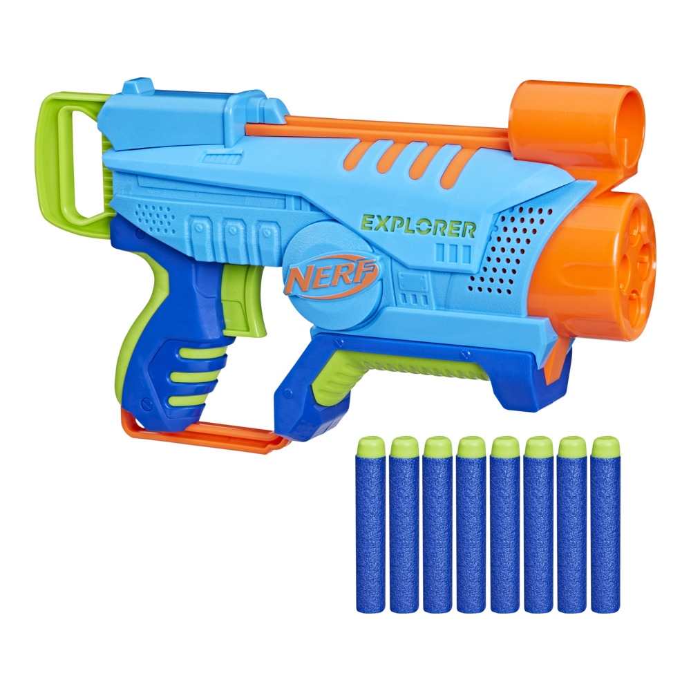 Οι εκτοξευτές αφρού Nerf Elite Junior είναι σχεδιασμένοι για αγόρια αλλά και για κορίτσια που συμμετέχουν στις αναμετρήσεις Nerf για πρώτη φορά. Τα ειδικά σχεδιασμένα χαρακτηριστικά τους, καθιστούν εύκολο το παιχνίδι,ώστε τα παιδιά να παίζουν συναρπαστικά παιχνίδια Nerf. Όλα αυτά τα χαρακτηριστικά επιτρέπουν στα παιδιά να συμμετάσχουν σε ένα διασκεδαστικό παιχνίδι δράσης και να επιδείξουν τις ικανότητές τους στην σκοποβολή. Ο εκτοξευτής Nerf Elite Junior Explorer εκτοξεύει 4 βελάκια στη σειρά και περιλαμβάνει στο σύνολο 8 βελάκια αφρού Nerf Elite. Συνιστώνται γυαλιά (δεν περιλαμβάνονται). Οι εκτοξευτές πωλούνται ξεχωριστά, ανάλογα με τη διαθεσιμότητα.