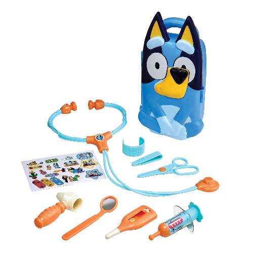 Γίνε όπως η Nurse Bluey! Αυτή η διασκεδαστική θήκη μεταφοράς περιέχει όλα τα αξεσουάρ παιχνιδιού που χρειάζεστε για να είστε σαν πραγματικός γιατρός. Η σκληρή θήκη είναι ιδανική για τους μικρούς θαυμαστές του Bluey για αποθήκευση και μεταφορά παντού. Όταν έχουν επιλυθεί όλα τα επείγοντα ιατρικά περιστατικά, όλα τα αξεσουάρ τοποθετούνται στη θήκη για τακτοποιημένο παιχνίδι. Αυτό το παιχνίδι προάγει το ευφάνταστο παιχνίδι ρόλων και την κοινωνική αλληλεπίδραση. - Διαθέτει μια σκληρή θήκη σε σχήμα Bluey. - Διαθέτει λαβή μεταφοράς για φορητό παιχνίδι. Περιλαμβάνει: - Στηθοσκόπιο - Θερμόμετρο - Ωτοσκόπιο - Σύριγγα - Επίδεσμος - Ψαλίδι - Καθρέφτης - Τσιμπιδακι φρυδιών - Ένα φύλλο με αυτοκόλλητα