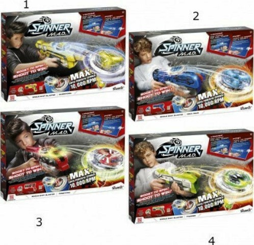 Spinner M.A.D Σετ Όπλο & Σβούρα Single Shot-4 Σχέδια 7530-86300.Στριφογύρισε στη μανία του Spinner M.A.D.! Όπλισε ξανά και ξανά! Δες τη σβούρα σου να εκτοξεύεται και να στριφογυρίζει με απίστευτες ταχύτητες. Ποιος θα είναι ο νικητής; Περιεχόμενα:1 όπλο,1 σβούρα.