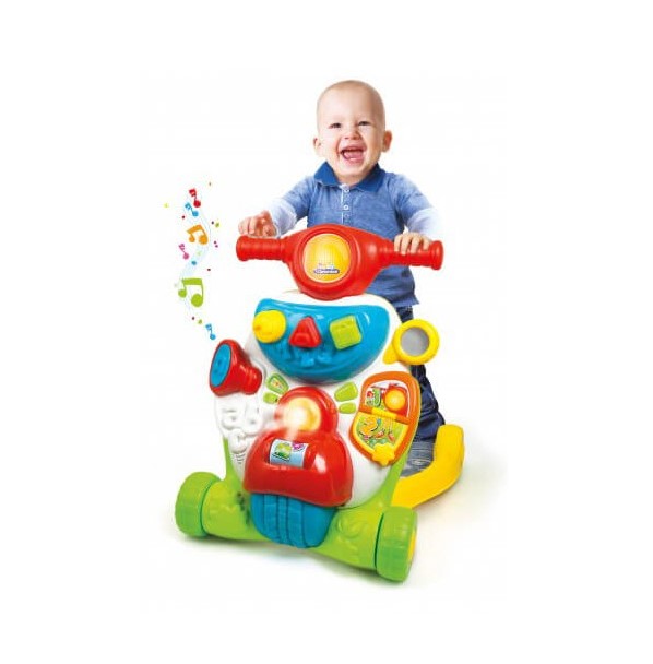 Scooter περπατούρα που λειτουργεί και σαν εκπαιδευτικό κέντρο δραστηριοτήτων σε δύο γλώσσες Αγγλικά και Ελληνικά. Μαθαίνει με διασκεδαστικό και απλό τρόπο τα πρώτα γράμματα, τους αριθμούς και τα σχήματα.