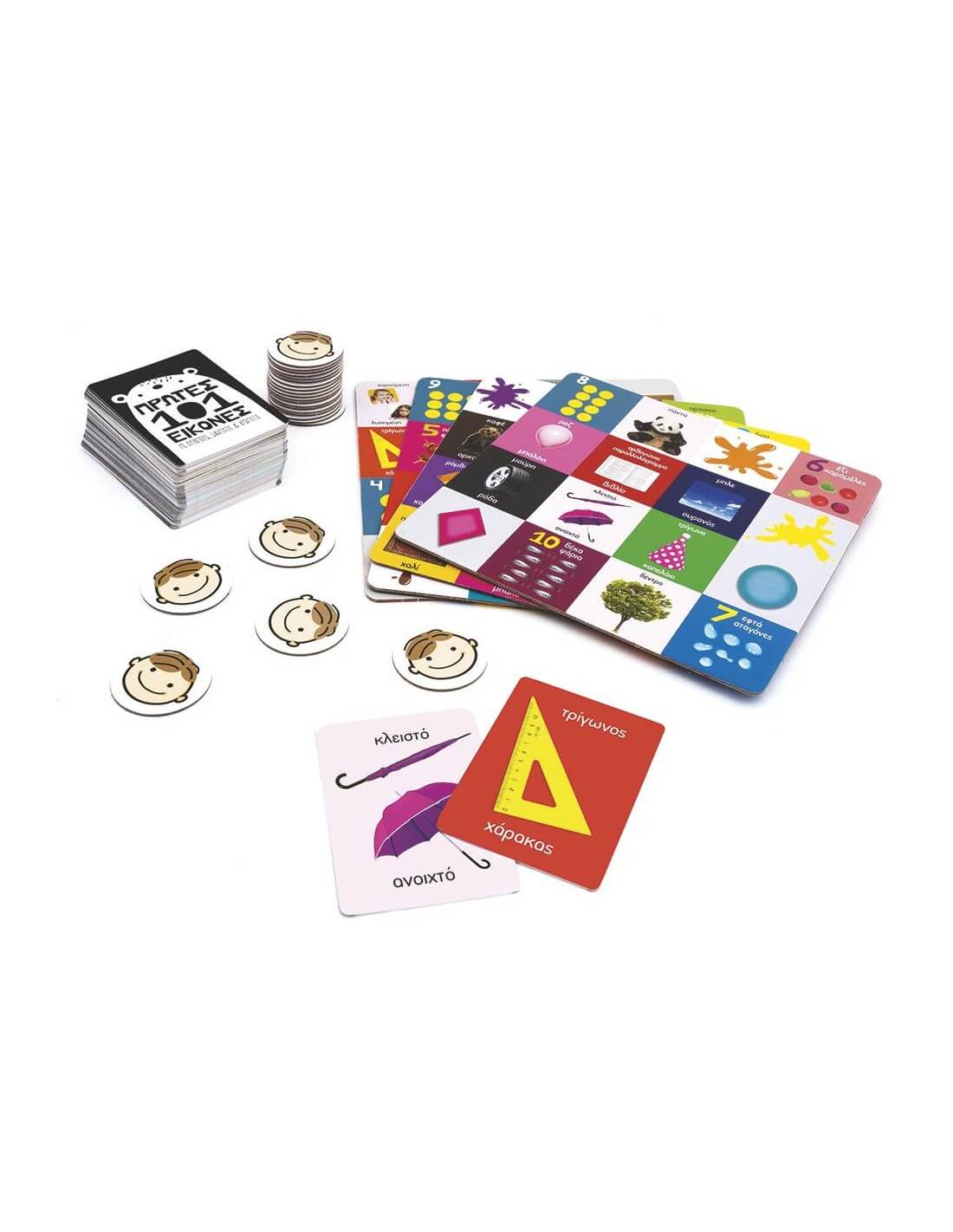 Τράβηξε μία κάρτα και παρατήρησε το αντικείμενο και τα χρώματα. Ταιριάζει η εικόνα με κάποια εικόνα στο ταμπλό σου; Αν ναι, τοποθέτησε μία μάρκα-φατσούλα πάνω στην αντίστοιχη εικόνα στο ταμπλό σου. 4 φατσούλες στη σειρά και κέρδισες! Ένα διασκεδαστικό επιτραπέζιο παιχνίδι, που εισάγει τα παιδιά στον κόσμο των αριθμών, των xρωμάτων και των σχημάτων!