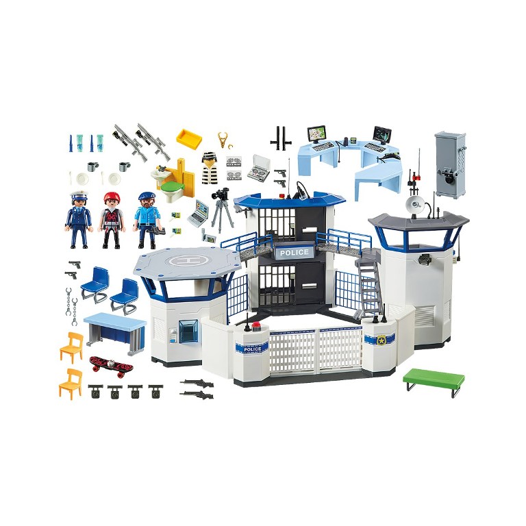 Αρχηγείο αστυνομίας με φυλακή και ελικοδρόμιο. Με ρήγμα στο τείχος των κελιών, συσκευή αναγνώρισης δακτυλικών αποτυπωμάτων και φοριαμός για την αποθήκευση των αποσκευών.