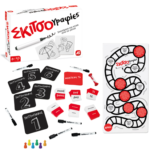Δε ζωγραφίζεις καλά; Κανένα πρόβλημα! Όσο χειρότερες είναι οι ζωγραφιές, τόσο πιο αστείο θα είναι το παιχνίδι! Σκίτσαρε μία εικόνα από 3 διαφορετικές κατηγορίες: Ποιος; Που; Τι; Προσπάθησε να κάνεις τους συμπαίκτες σου να μαντέψουν τι ζωγράφισες και γελάστε μέχρι δακρύων! Είναι πολύ απλό Τράβηξε μία κάρτα από κάθε κατηγορία Ζωγράφισε το συνδυασμό τους μέσα σε 2 λεπτά! Οι συμπαίκτες σου καταγράφουν τις απαντήσεις τους, προσπαθώντας να μαντέψουν τα 3 στοιχεία που ζωγράφισες Όσο περισσότερα μαντέψουν, τόσο πιο κοντά θα φτάσεις στον τερματισμό! Προσοχή! Τα ειδικά πεδία στο ταμπλό μπορούν να ανατρέψουν το παιχνίδι Αριθμός Παικτών: 2-6 Καταλληλότητα Ηλικίας: 8+ Χρονών Μέση Διάρκεια Παιχνιδιού: 30 λεπτά Το παιχνίδι περιλαμβάνει - 1 ταμπλό - 6 καρτέλες Σκιτσογράφος - 6 καρτέλες Μάντεψέ το - 150 κάρτες με 300 θέματα - 1 κλεψύδρα - 6 πιόνια - Φυλλάδιο οδηγιών